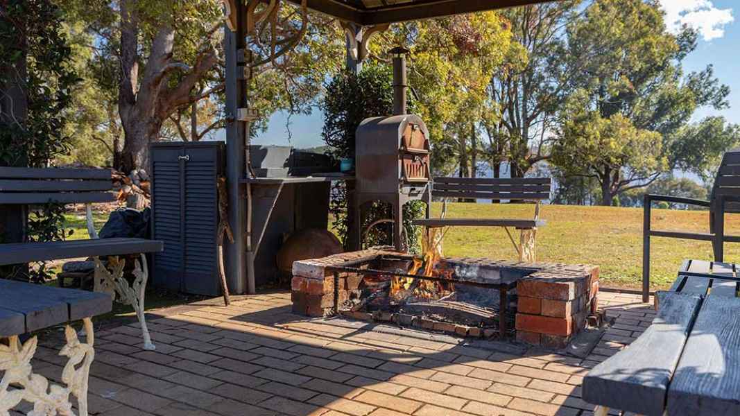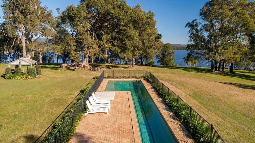 Enjoy country life in this magnificent waterfront homestead. The homestead has 4 bedrooms 2 baths, sleeps 8. Take time to enjoy the surroundings in one of the many covered relaxation areas which overlook the tranquil gardens and lake. Enjoy golf on your own 5-hole golf course, take a swim in the pool, go bush walking, or take a canoe or SUP on the lake. As the sun sets enjoy a glass of wine while watching the spectacular sunsets. A fully equipped kitchen, and outdoor fire pit and wrap around lounge with open fireplace are just some of the luxuries to be enjoyed at this prestigious property.