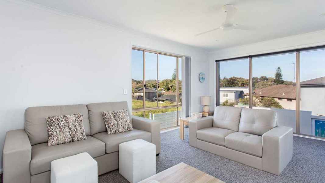 By The Pool is a modern, light and bright spacious beach home. When you have enjoyed your day at Bluey’s Beach (metres away) you have a sparkling pool and spa waiting for you to enjoy your glass of wine while watching the sun go down. By The Pool has a fully equipped kitchen with dishwasher, double fridge and island bench. There are two bedrooms which can sleep 5 and have ceiling fans.